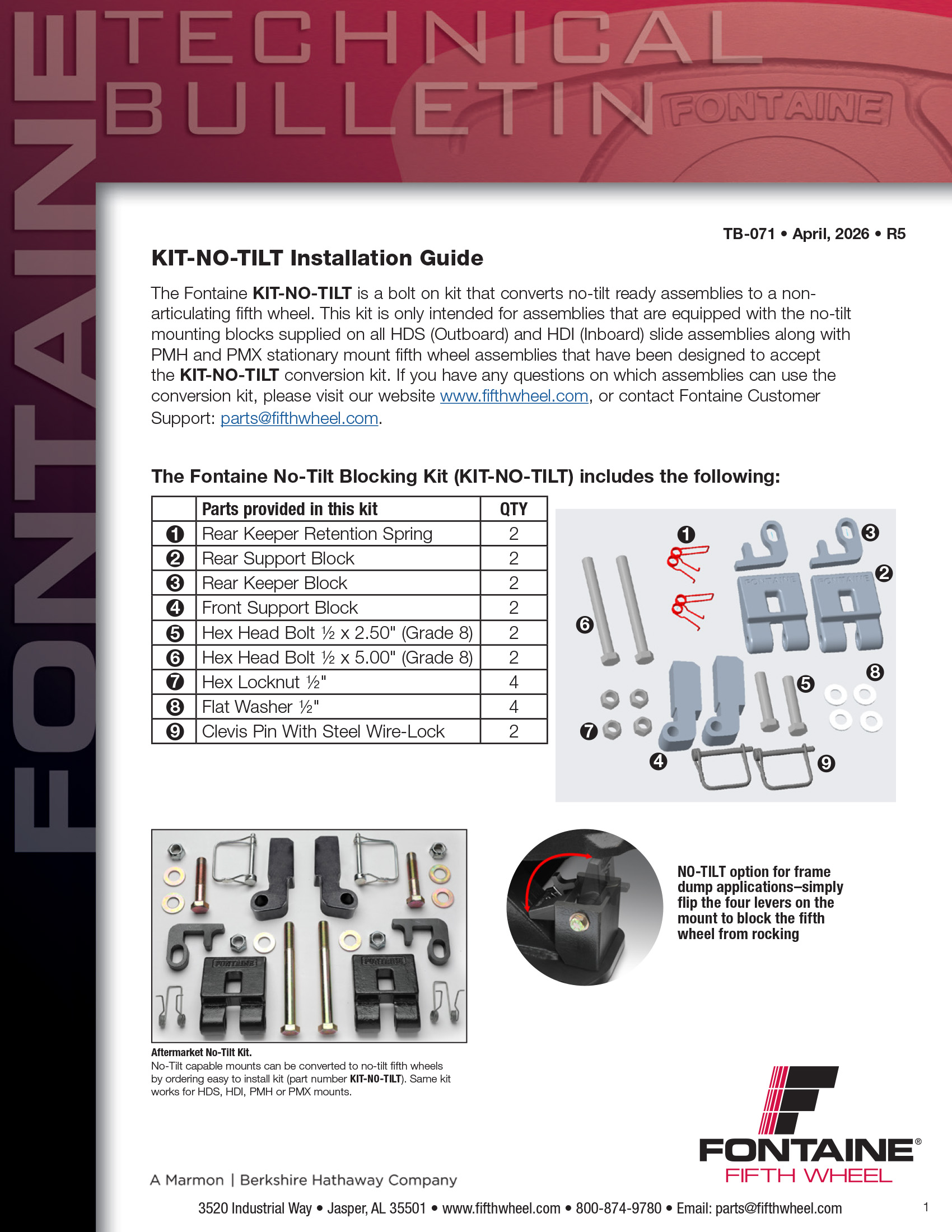 LT-044 | Fontaine Fifth Wheel Parts Catalog LT-135 | LT-076 | Heavy/Severe Duty Mini Catalog LT-322 |