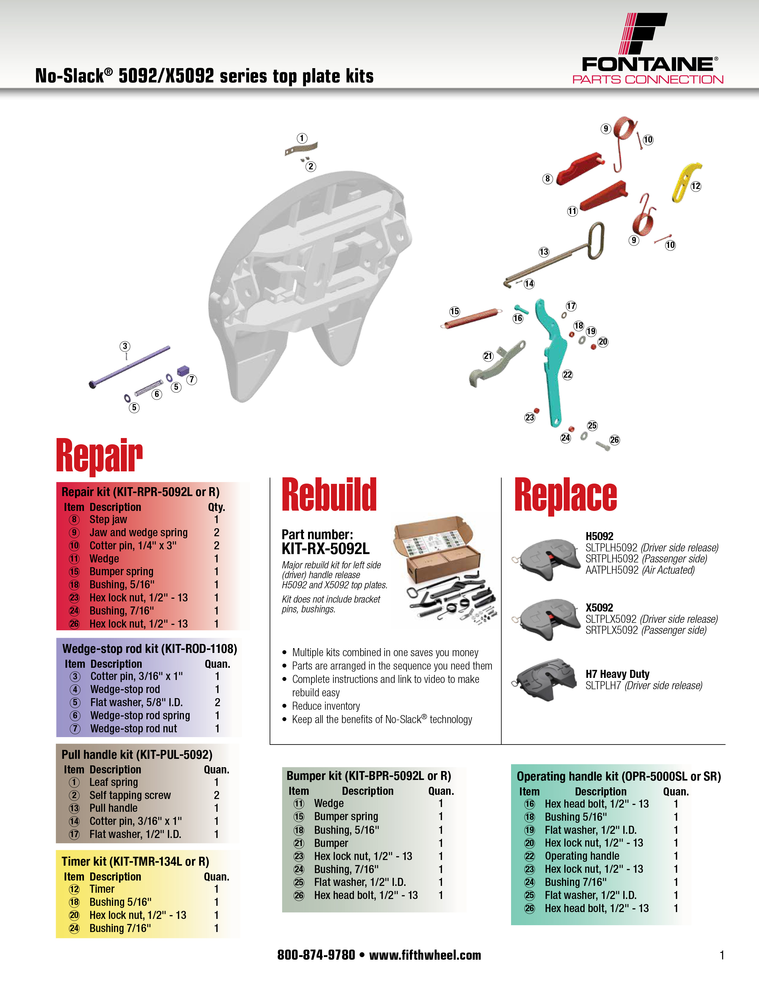 LT-044 | Fontaine Fifth Wheel Parts Catalog LT-135 | LT-076 | Heavy/Severe Duty Mini Catalog LT-322 |
